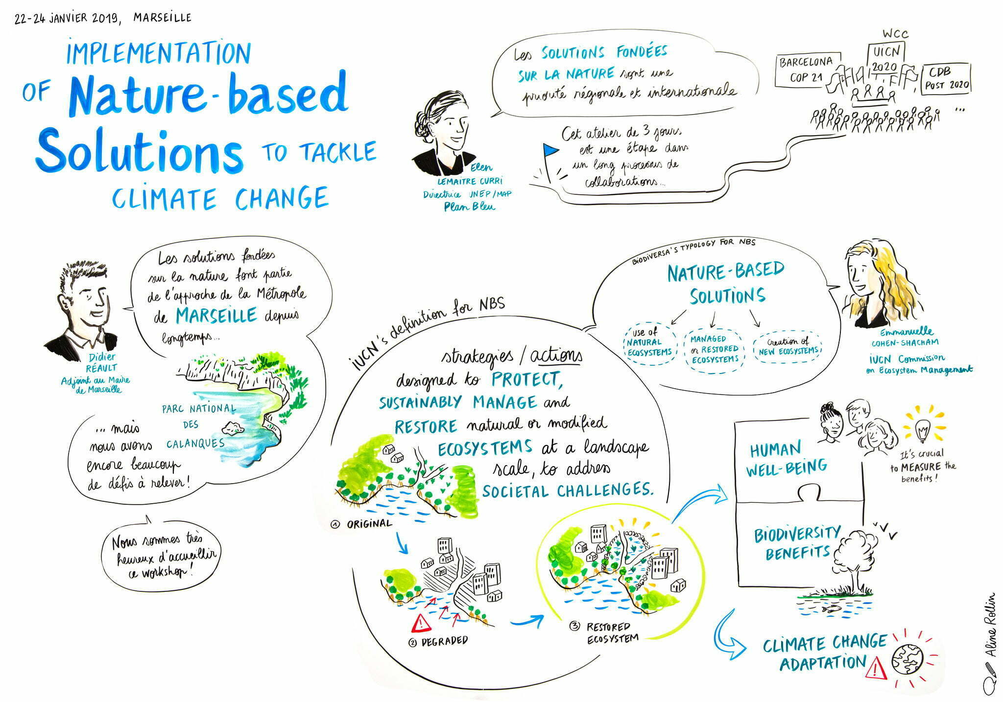 The city of Marseille hosted the workshop “Implementation of Nature-based Solutions to tackle climate change: Focus on the Mediterranean region” on 22-24 January 2019. Organized by Plan Bleu, IUCN Centre for Mediterranean Cooperation, UICN French Committee, Conservatoire du Littoral, Tour du Valat, MedWET and Wetlands International, this event brought together researchers, practitioners and policy makers of the Mediterranean region and European Union to discuss on the benefits and challenges related to Nature-based Solutions implementation.